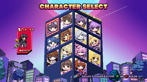 キャラクターセレクトです。この画面の新規グラフィックはまだかわいい。 |